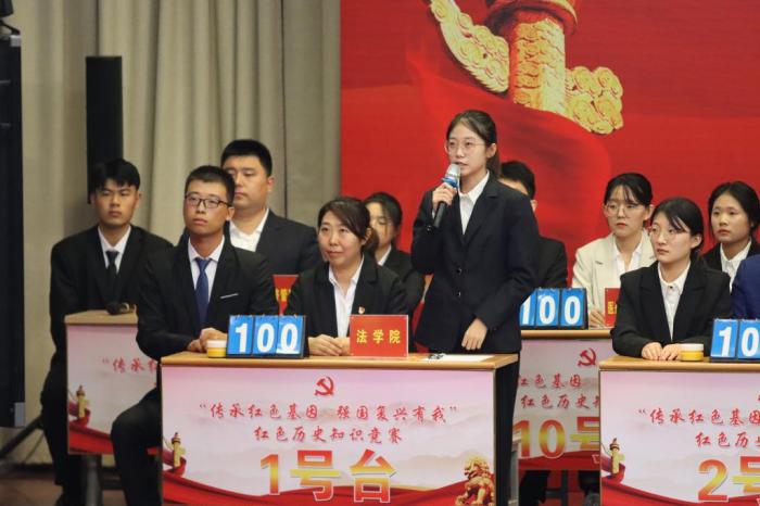 为巩固拓展党史学习教育成果,进一步激发师生在思想政治、道德品质、价值取向等方面发挥更好的引领力、感召力。10月10日晚,由党委组织部、党委宣传部主办,学生工作处、团委、经济管理学院承办的“传承红色基因强国复兴有我”红色历史知识竞赛决赛在求实楼4009报告厅成功举办。党委副书记王金利,党委委员、组织部部长杨恩红,党委委员、宣传部部长任立春出席活动。