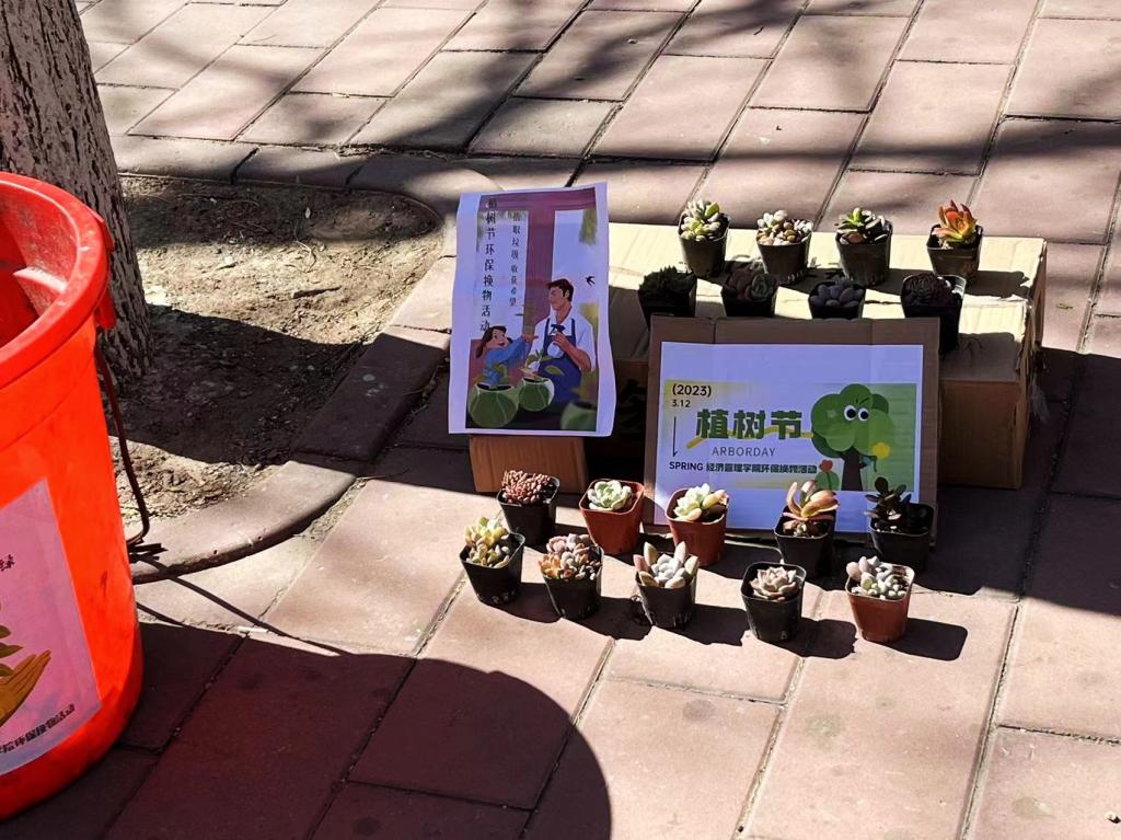 3月12日,正值第四十五个植树节之际,经济管理学院学生会举办“手持一抹绿 心栽一片林”植树节环保换物活动。活动中同学们按照划分的区域在校园内捡拾垃圾,通过定量垃圾换回一盆小小绿植,为校园生活增添一抹生机和绿色。现场志愿者有序组织并耐心讲解垃圾回收的方式及分类回收垃圾的益处。