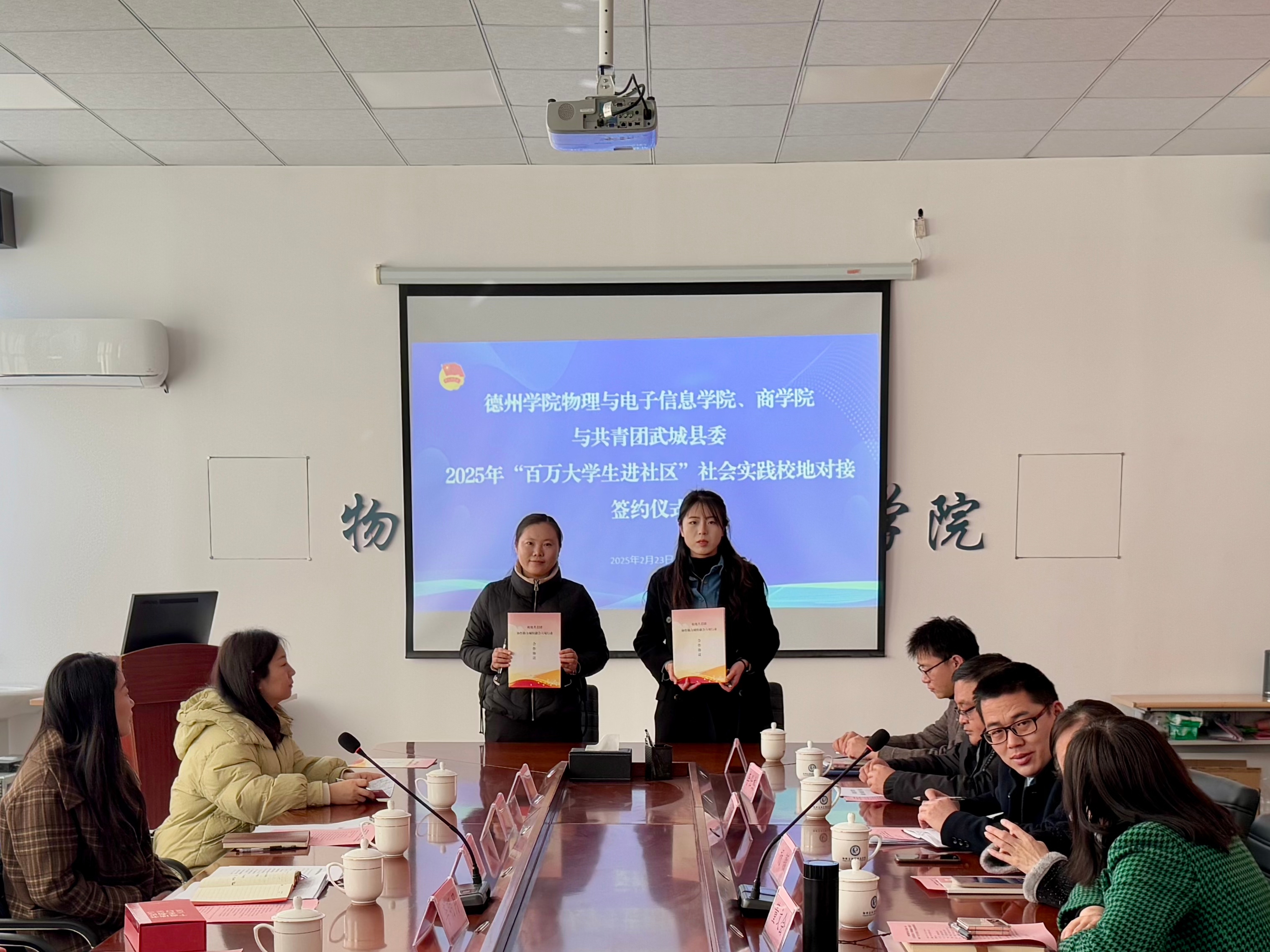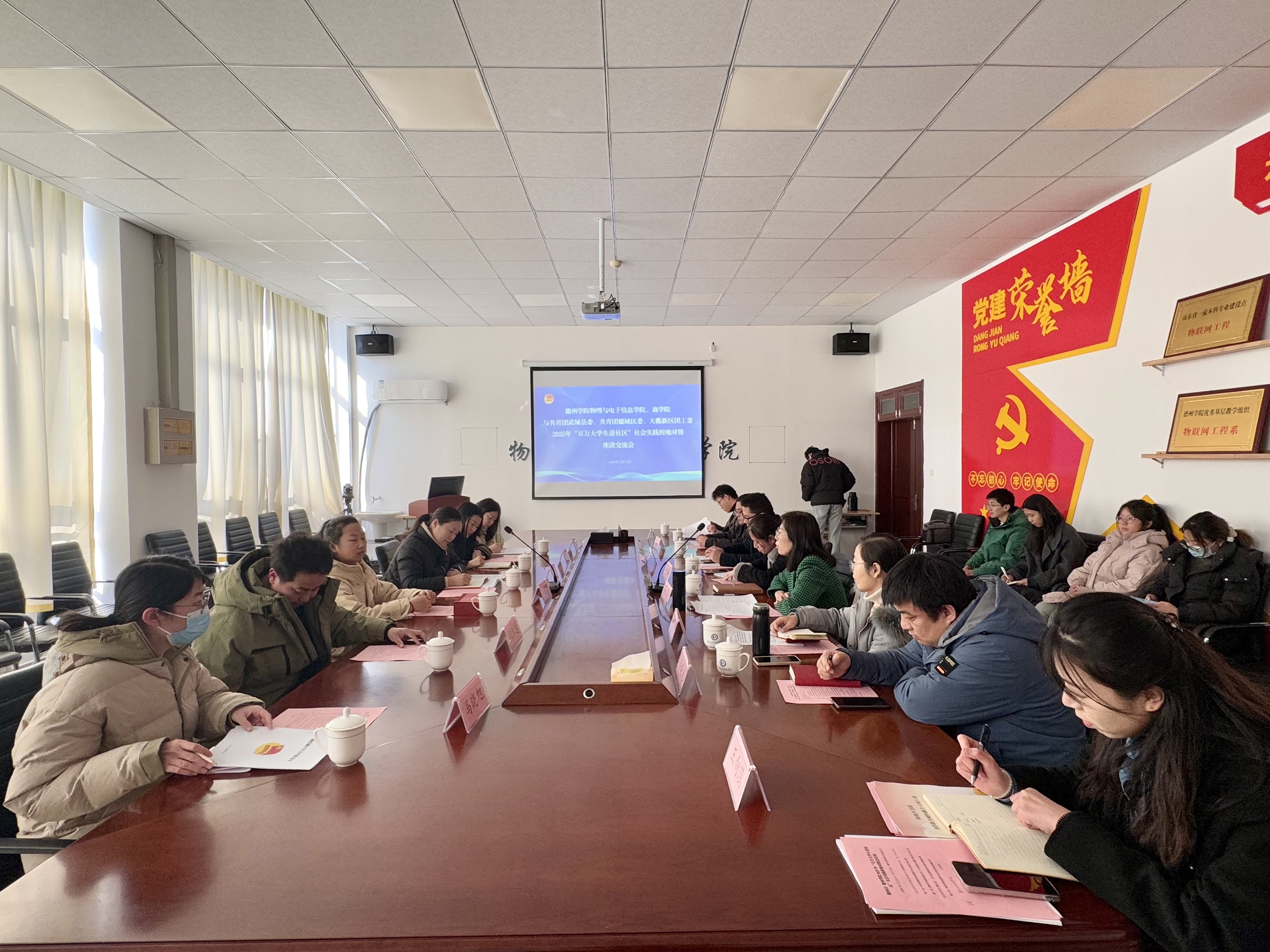 为深入学习贯彻习近平新时代中国特色社会主义思想和党的二十届三中全会精神,充分发挥共青团组织桥梁纽带作用,推动学院工作高质量发展,协作助力城校融合提质增效。2月23日,а 天堂 在线、物理与电子信息学院与共青团武城县委、共青团德城区委、天衢新区团工委开展2025年“百万大学生进社区”社会实践校地对接座谈交流会。