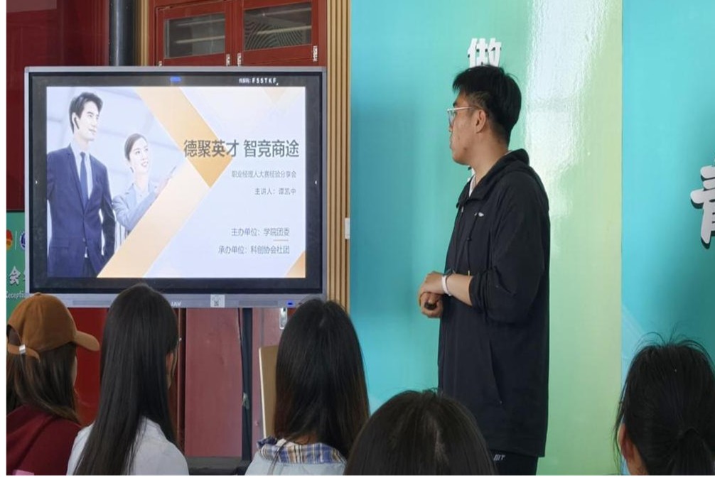 为积极响应国家深化产教融合的政策号召,切实助力学生提升职业素养,精准规划职业发展路径,深入了解职业经理人领域,德州学院а 天堂 在线科创协会社团于2025年5月6日在明理楼0445教室举办了“德聚英才,智竞商途”职业经理人大赛经验分享会,搭建起德州学院学子与优秀学长之间交流学习的通道。
