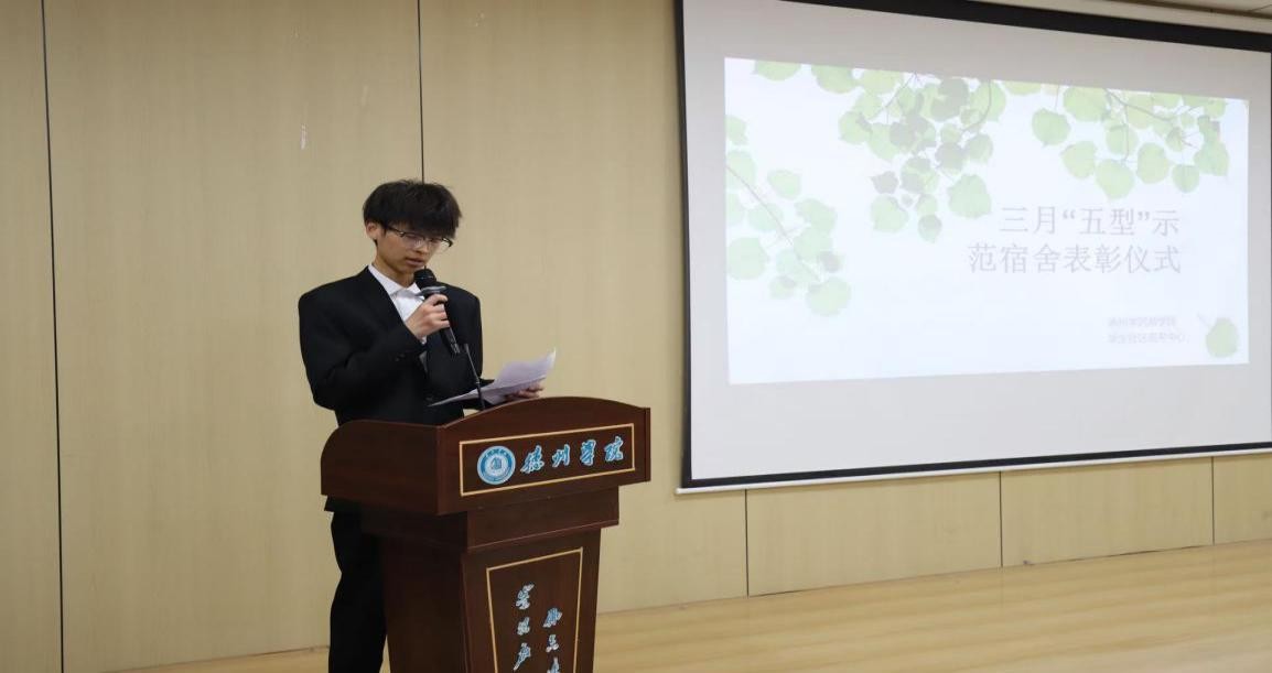 仪式伊始,现场大屏幕滚动播放四月份优秀宿舍代表日常生活照片。优秀宿舍充分发挥标杆引领作用、榜样带动作用,营造宿舍良好学习氛围,强化宿舍安全意识,激励全体同学积极投身于宿舍文化建设。