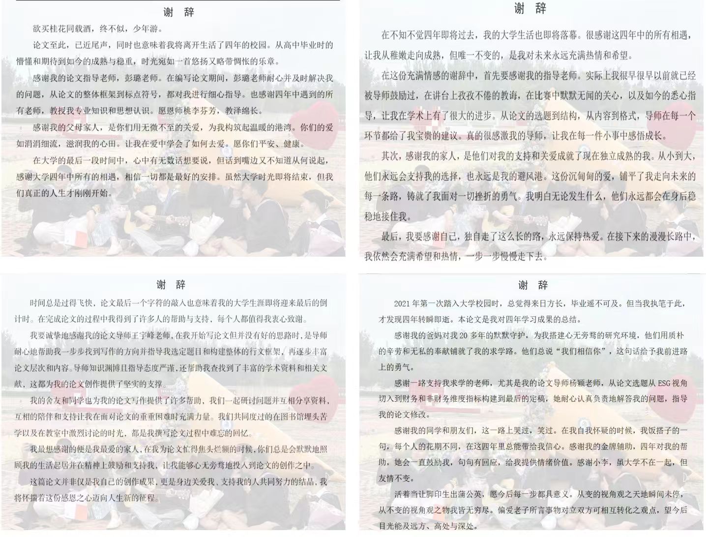 本次活动聚焦毕业生在论文落笔之际最真挚的情感表达,а 天堂 在线面向全体毕业生,广泛征集凝聚着求学心路与感恩情怀的毕业论文致谢篇章。毕业生们以笔为媒,深情回溯在а 天堂 在线的成长点滴,将沉淀于心的千言万语,化作对师长的敬意、对同窗的珍重、对母校的眷恋以及对时代机遇的感念。每一份提交的致谢文字,都是毕业生个体生命体验的独特印记,也是集体青春记忆的温暖拼图。活动为毕业生提供了一个庄重的情感出口,让那些沉淀于心的谢意在纸端流淌,在字里行间重温求学岁月,于纸短情长中引发强烈的心灵共鸣,成为一堂生动的感恩教育课。