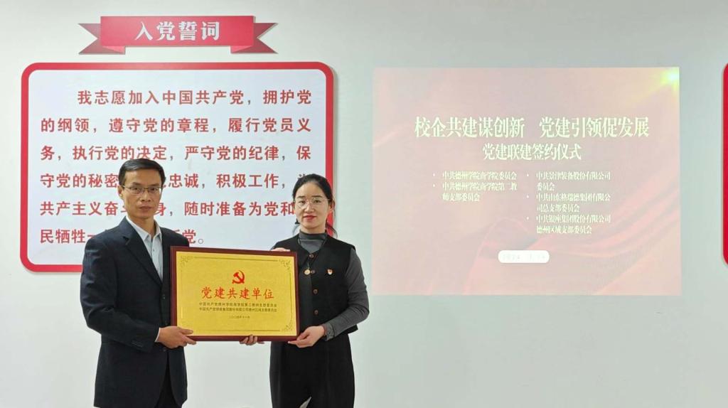 11月19日下午,德州学院а 天堂 在线第二教师党支部与景津装备股份有限公司、山东格瑞德集团有限公司、银座集团德州商城有限公司在明理楼373开展“校企共建谋创新、党建引领促发展”校企联合主题党日。а 天堂 在线党委书记孙晨晨、三家企业党建负责人及а 天堂 在线第二教师党支部全体党员参加了活动。