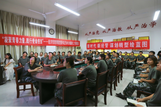 9月14日晚,经济管理学院党委书记张月青以“深入学习贯彻落实习近平新时代中国特色社会主义思想,跑好属于新时代的接力棒,争做新时代好青年”为题,为2023级新生进行专题党课授课。