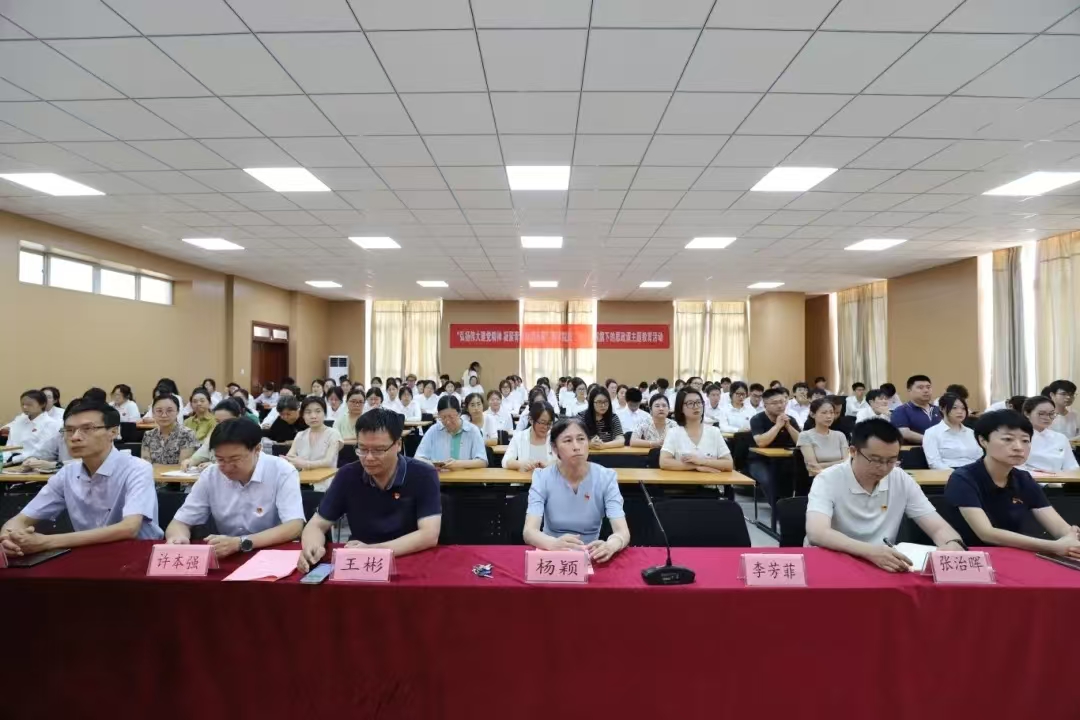 为庆祝中国共产党成立103周年,讴歌党的辉煌历程和伟大成就,继承和弘扬伟大建党精神,引领广大师生感悟信仰力量,坚定理想信念。建党节前夕,а 天堂 在线在明理楼0157教室举办“弘扬伟大建党精神 凝聚青春奋进力量”国旗下的思政课主题教育活动。а 天堂 在线领导班子,全体党支部书记,全体教师党员,全体辅导员、班主任,2024年上半年新发展预备党员和新发展共青团员共180余人参加了活动。