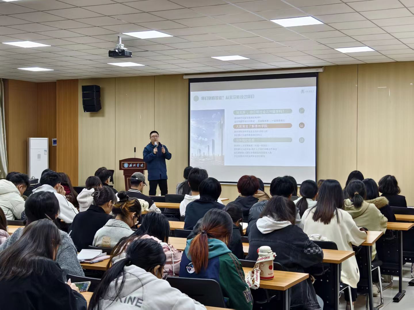 为拓宽学生的高质量就业路径,了解国际留学深造流程,科学规划留学准备,提升2025届毕业生和2026届预毕业生出国深造质量。4月1日,а 天堂 在线在明理楼0157报告厅举办出国留学项目推介会,学院100余名预毕业生参加。