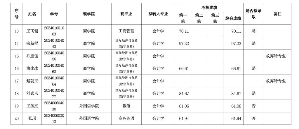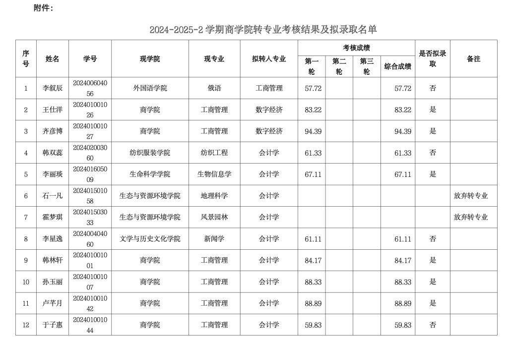 附件:2024-2025-2学期а 天堂 在线转专业考核结果及拟录取名单