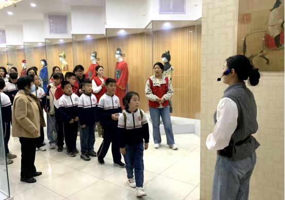 在国家纺织面料馆德州学院分馆,讲解员围绕“科技、时尚、生态、传承”四大主题详细介绍了国家纺织面料馆的丰富展品。同学们纷纷对各种不同规格、色彩和图案的面料和风格、色彩、造型各异的服装设计产生了浓厚的兴趣。通过参观,同学们了解了我国源远流长、锦绣灿烂的纺织历史,以及蕴含其中的中华服饰文化中的智慧与情感、创新与包容,以及中国服饰的美学精神和科学精神。