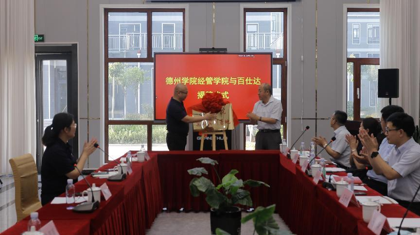 德州学院党委副书记王金利与格瑞德集团企业领导和百仕达公司共同为德州学院就业基地和实习实践基地揭牌。