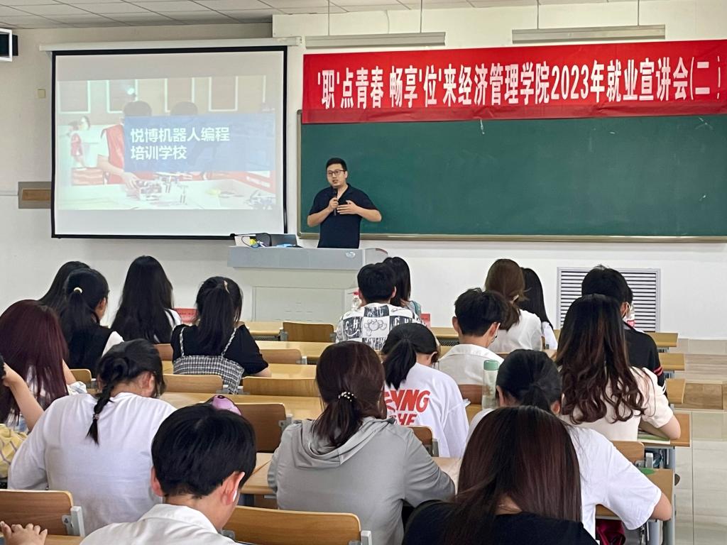 为进一步推进我院2023届毕业生就业工作,构建毕业生与用人单位之间的交流平台,为毕业生提供更多就业机会,经济管理学院分别于5月13日上午、5月16日下午在明理楼0233教室举办“‘职’点青春 畅享‘位’来”2023年就业宣讲会。