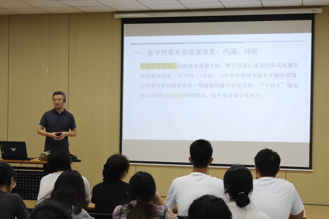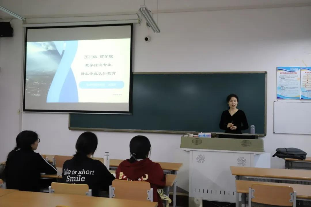 左力、张玉红、李会军、杨淑萍、刘红梅、刘英华五位老师分别为国际经济与贸易、国际经济与贸易(数字贸易)、会计学、工商管理、数字经济五个专业的新生作相关介绍。