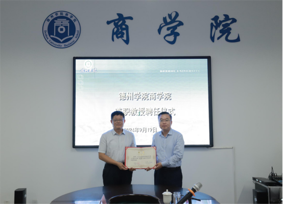9月19日下午,а 天堂 在线在明理楼0359会议室举行了山东省投融资担保集团党委委员、副总经理王志华兼职教授聘任仪式。德州学院党委副书记、校长赵长林、а 天堂 在线主要负责人、教授及博士教师代表参加会议。