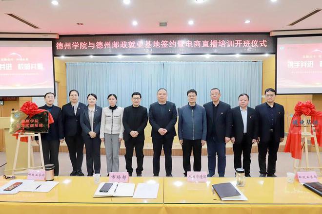 活动当天,校邮双方还举办了就业基地签约暨电商直播培训开班仪式,共同为“德州学院就业基地”和“实习实训基地”揭牌。