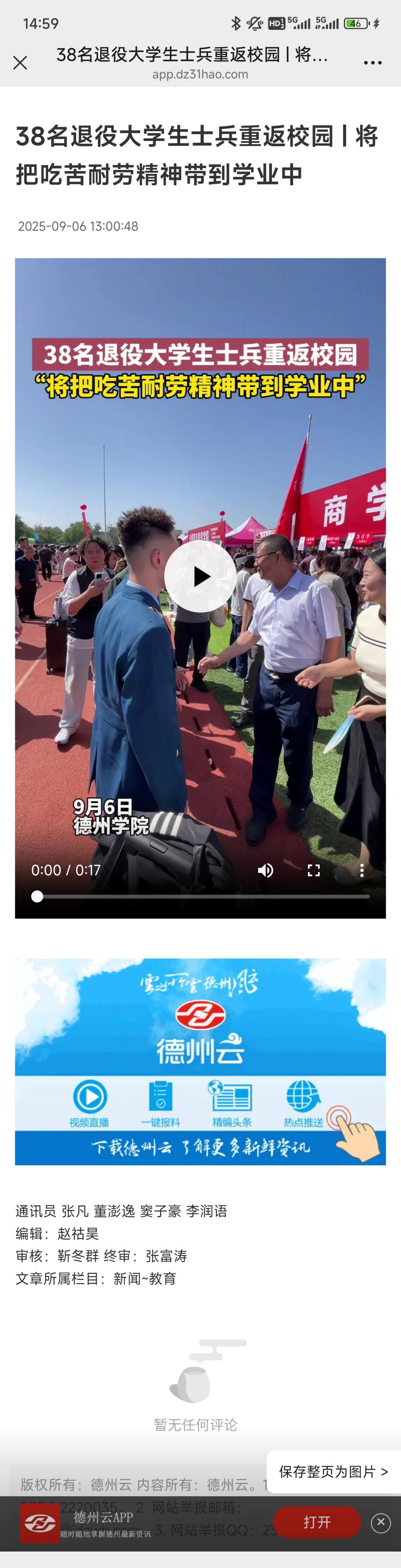 德州云:38名退役大学生士兵重返校园 | 将把吃苦耐劳精神带到学业中