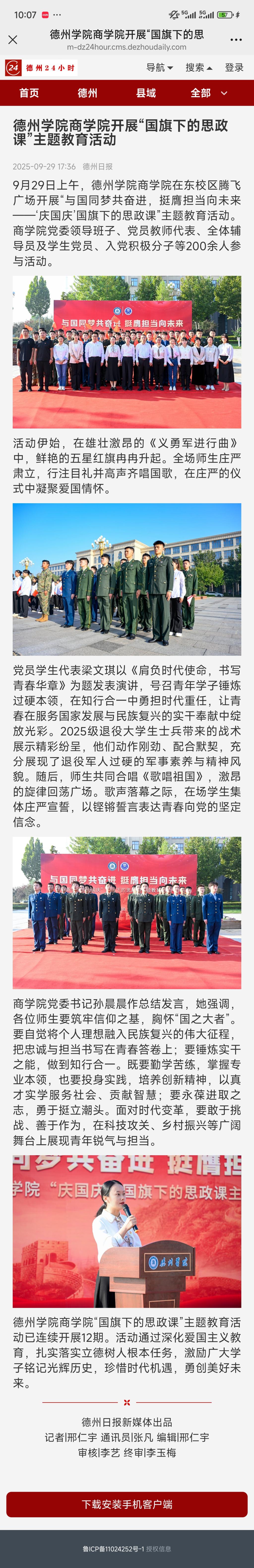 德州24小时:德州学院а 天堂 在线开展“国旗下的思政课”主题教育活动