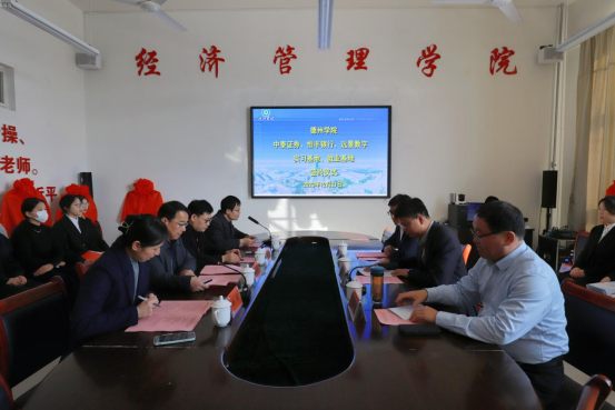 为充分发挥企业在教育创新中的作用,促进教育与产业、学校与企业深度合作,拓宽学生实习和就业渠道,12月21日,经济管理学院在明理楼0359举行中泰证券、恒丰银行、远景(山东)数字技术有限公司实习实训基地、就业基地签约揭牌仪式。
