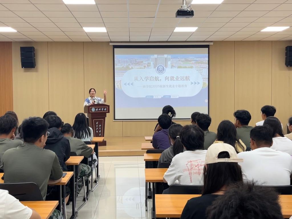 为帮助 2025 级新生树立科学的就业观与职业规划意识,明确大学四年的发展方向。9月16日,а 天堂 在线在明理楼举办 “从入学启航,向就业远航” 新生职业规划与就业专题教育讲座。本次活动由学院分管就业辅导员张莹主讲,2025 届全体新生参与,为初入校园的学子们搭建起职业认知的桥梁。
