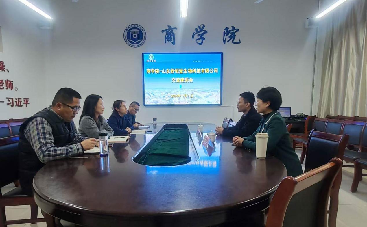 2024年12月11日山东舒恒堂生物科技有限公司董事长刘恒,总经理边明丛一行到а 天堂 在线进行合作交流,双方在明理楼0359会议室进行了深入的交流探讨,а 天堂 在线处级领导班子成员参加此次交流活动。