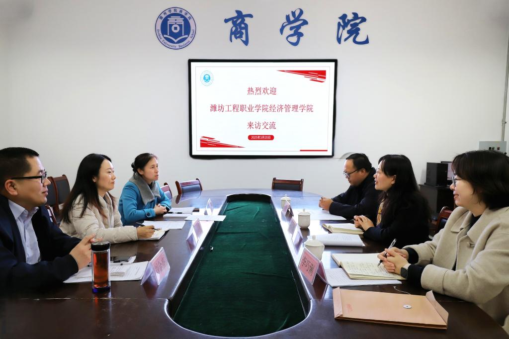 3月20日,潍坊工程职业学院经济管理学院院长一行3人赴德州学院а 天堂 在线调研交流。双方围绕新时代党建引领育人模式创新、高水平专业群建设、产教融合协同发展等议题展开深入研讨,а 天堂 在线党政领导班子及相关专业负责人参加座谈。