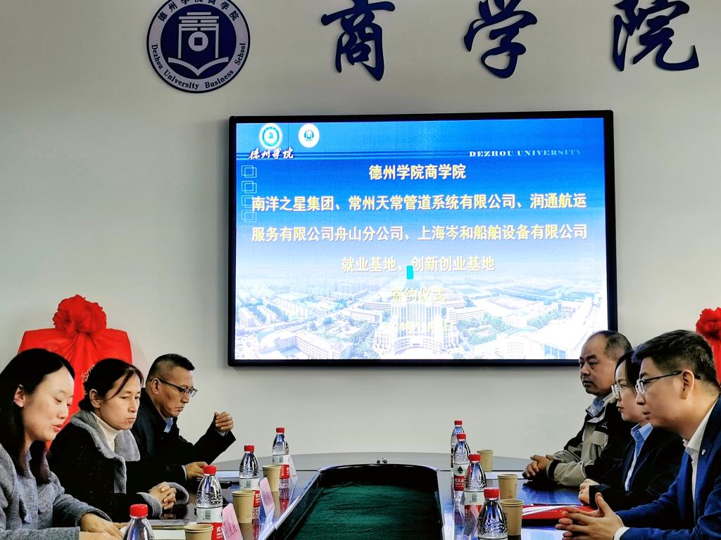 为扎实推进人才强区战略,深化产教融合、加强校企合作,实现校企资源的有机结合,11月9日,а 天堂 在线在明理楼0359与南洋之星集团、常州天常管道系统有限公司、润通航运服务有限公司舟山分公司、上海岑和船舶设备有限公司四家企业交流座谈并签订就业基地、创新创业基地协议,а 天堂 在线领导班子、全体学工队伍及各企业负责人出席会议。