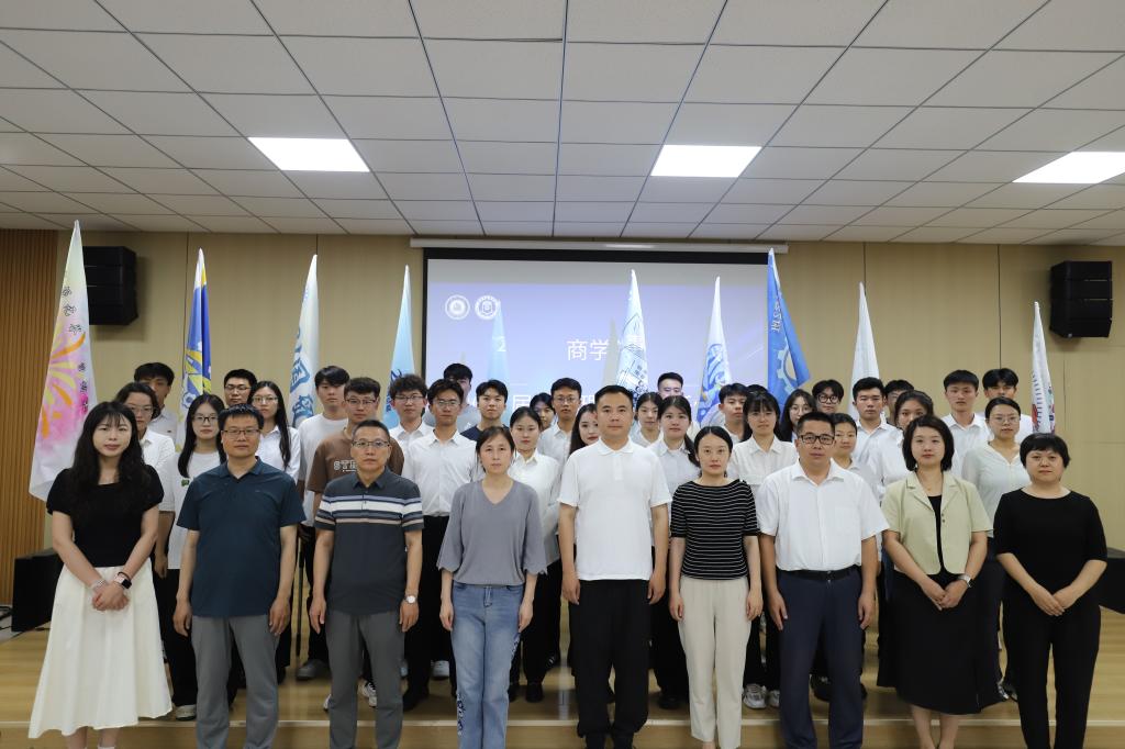 教师代表王彬深情回顾育人历程,寄语大家不忘求学初心,永葆商院情怀,积极发挥纽带作用,将校友情谊转化为支持母校发展的持久动力。在校生代表向学长学姐致以崇高敬意,表示新理事会的成立是榜样引领,全体在校生将传承商院精神,精进学业,未来以校友身份回馈母校培育。