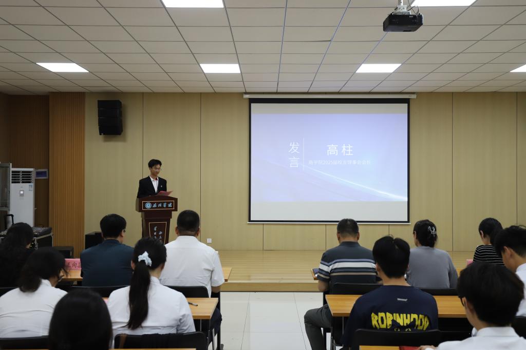 2025届校友理事会会长高柱在发言,他表示,理事会会长的身份既是代表着认可和信任,也是一份责任和担当,他承诺将肩负联络校友、服务母校的重任,并呼吁全体毕业生同心协力,为学院发展注入新活力。2015届杰出校友王冰崧代表往届校友发言。他结合往届工作经验,勉励2025届校友理事会成员勇于创新、善用资源,持续深化校友网络建设,为学院发展贡献更大力量。