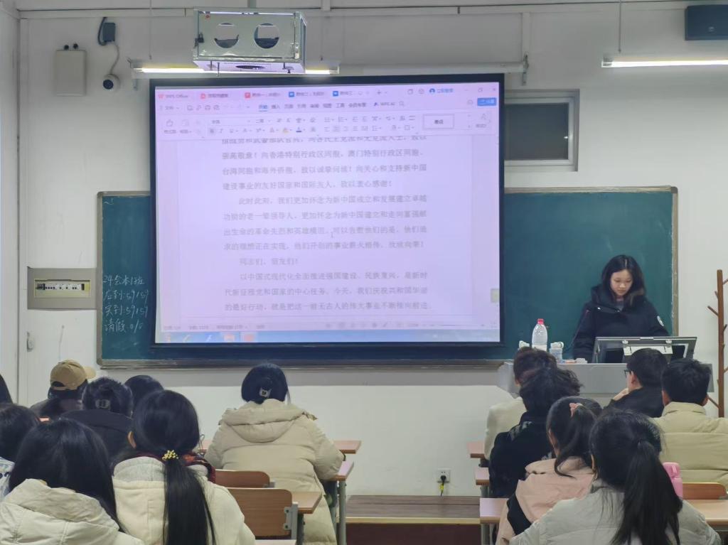 活动伊始,2024级各班团支部书记带领大家共同回顾中华人民共和国成立75年来取得的辉煌成就,从思想建设、组织建设到作风建设等多方面展示了党如何在实践中不断自我革新、自我完善,成为领导民族复兴的中流砥柱。此外,2024级各班团支部书记号召全体同学锤炼品德修为,筑牢道德根基,成为新时代优秀中国青年。