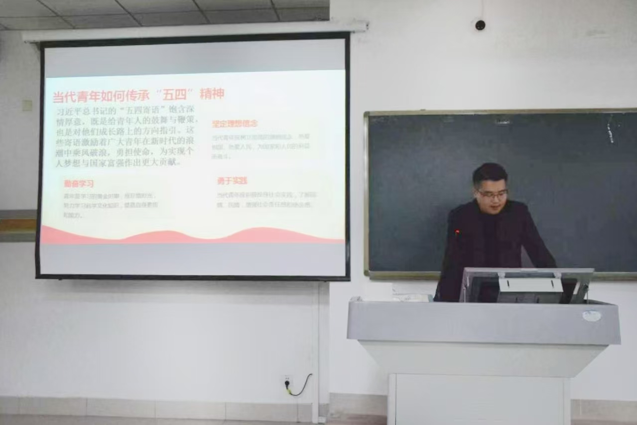 10月30日,辅导员孙乐老师以“2024年全国两会精神”和“习近平总书记‘五四寄语’关键词”为主题,介绍了新质生产力、科技创新等热点话题,并与大家一起聆听两会的声音。他强调广大团员青年要牢记历史使命,勇担时代重任,以更加饱满的热情和更加坚定的信念,投身到实现中华民族伟大复兴的宏伟事业。