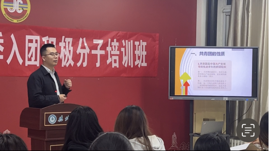 学院团委负责人为本次入团积极分子培训班做动员讲话。他强调,开办入团积极分子培训班,目的是通过理想信念教育、爱国主义教育、道德品行教育和团员意识教育,引导同学们学习党史、团史,培育家国情怀,自觉增强“四个意识”、坚定“四个自信”、做到“两个维护”。团委负 责人还强调了培训纪律、明确了培训目标及课时要求。